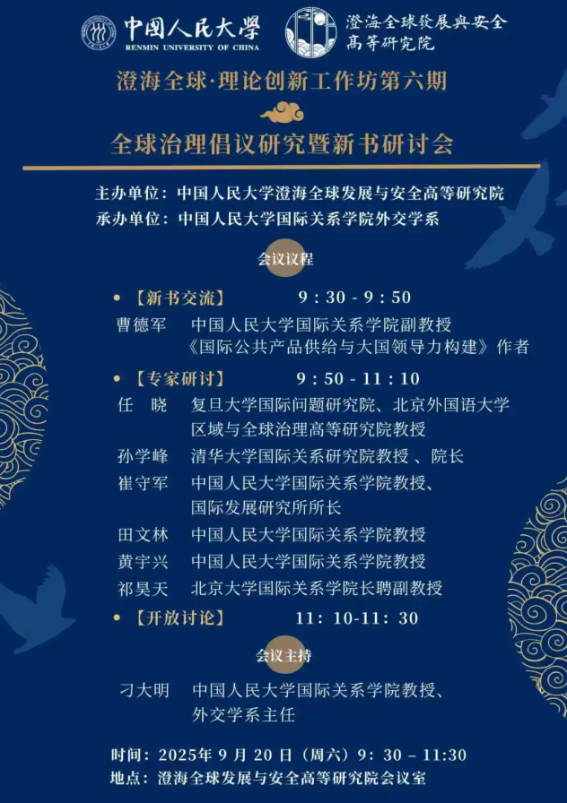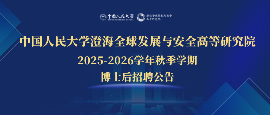 18 2025.11博士后招聘 | 中国人民大学澄海全球发展与安全高等研究院2025-2026学年秋季学期博士后招聘公告