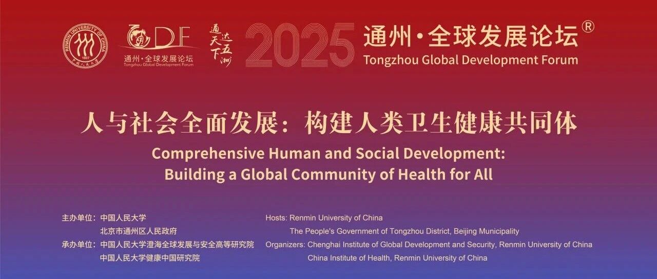 2025年10月18日,由中国人民大学、北京市通州区人民政府主办,中国人民大学澄海全球发展与安全高等研究院、中国人民大学健康中国研究院承办的通州·全球发展论坛(2025)——“人与社会全面发展:构建人类卫生健康共同体”分论坛在北京隆重召开。