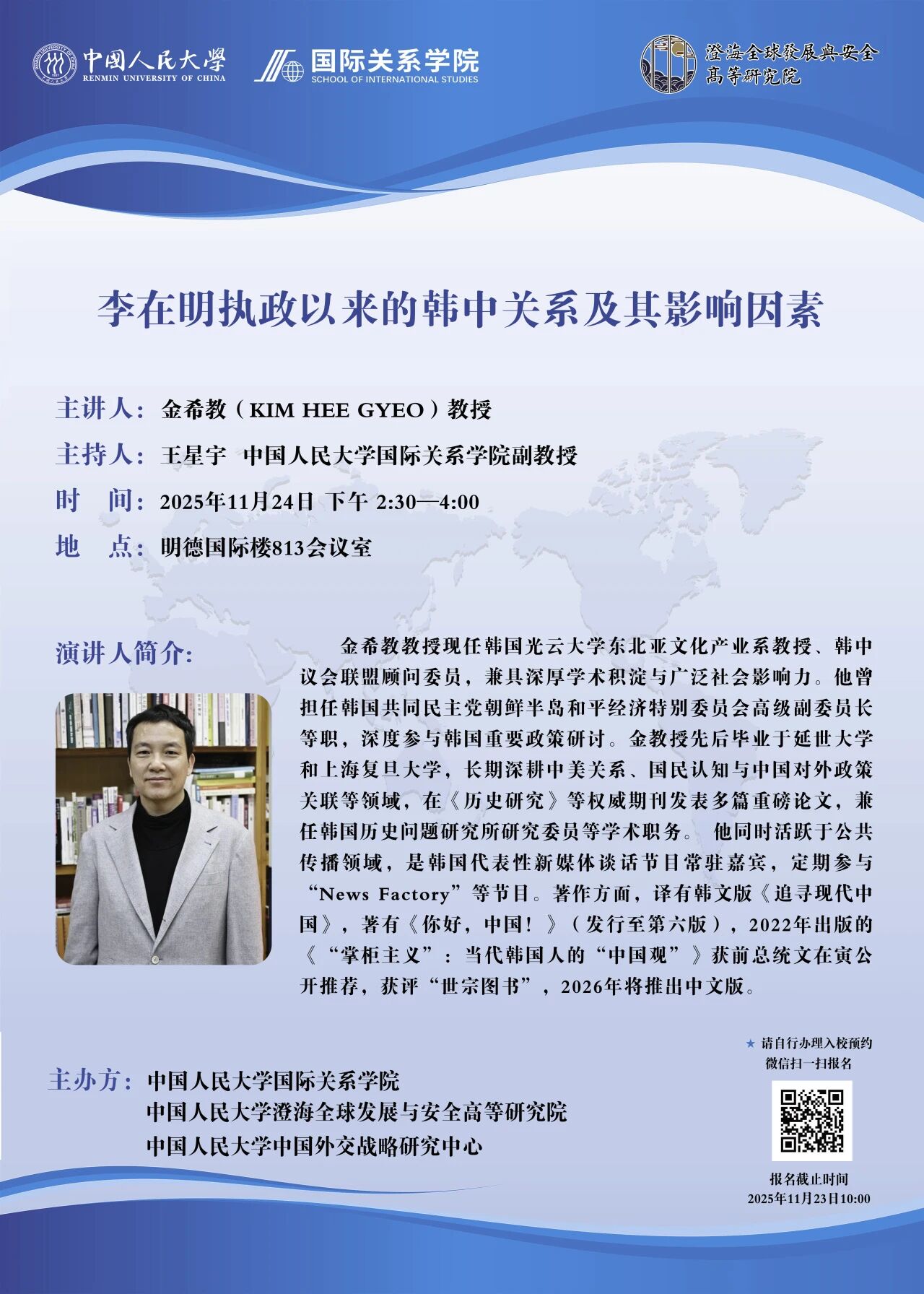 23 2025.11讲座预告 | 金希教:李在明执政以来的韩中关系及其影响因素
