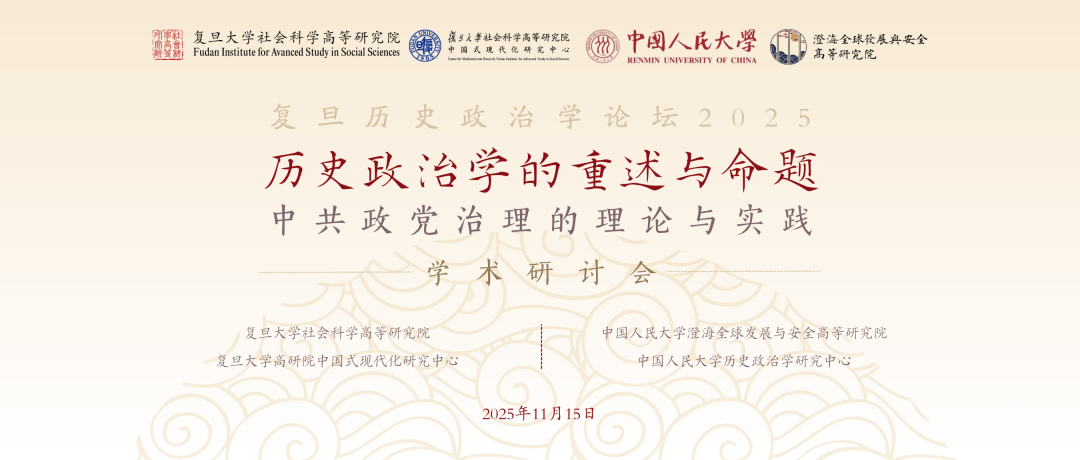 为推动政治学与中共党史的深度融合,凸显以历史为根基、以理论为中介、以比较为桥梁的研究路径对于理解中国政治与国家治理的意义,复旦大学社会科学高等研究院联合中国人民大学澄海全球发展与安全高等研究院,于2025年11月15日在复旦大学举办“历史政治学的重述与命题:中共政党治理的理论与实践”学术研讨会。本次会议将聚焦1921年中国共产党成立以来形成的“中国之治”新传统,讨论革命、建国、改革与新时代的连续机制如何在党的组织建设、国家建构、国家整合、发展与治理中得到生成、沉淀与再激活,以回应历史政治学的新进展,重述中共政党治理的学术命题,避免碎片化叙事,回到政治能动性与制度生成逻辑,为中国政治学的原创理论提供素材与范式,形成能够概念化、命题化与类型化的知识体系。