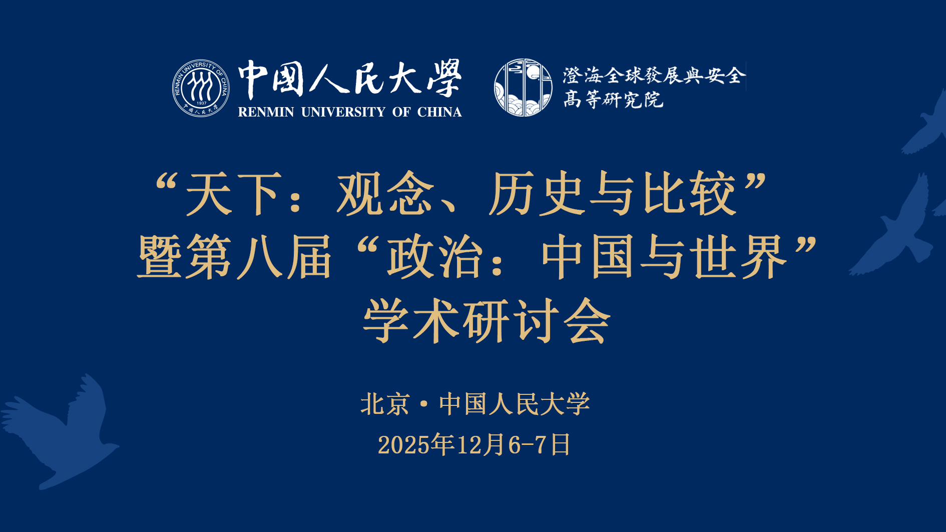 “天下:观念、历史与比较”暨第八届“政治:中国与世界”学术研讨会将于12月6日-12月7日在中国人民大学(中关村校区)举办。