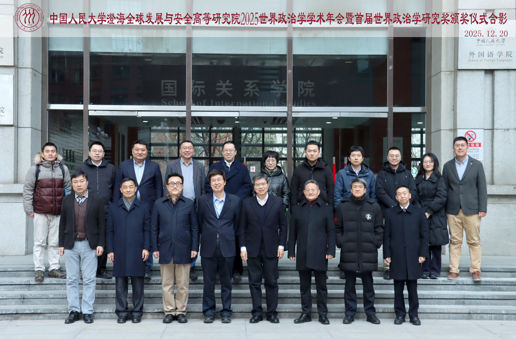 2025年12月20日,2025世界政治学学术年会暨首届世界政治学研究奖颁奖仪式在中国人民大学明德国际楼隆重举行。本次会议由中国人民大学澄海全球发展与安全高等研究院与中国人民大学国际关系学院主办,中国人民大学澄海全球发展与安全高等研究院世界政治学研究中心承办。除中国人民大学的学者外,会议吸引了来自北京大学、清华大学、中国社会科学院、复旦大学、吉林大学、南开大学、北京外国语大学、中央财经大学、上海社会科学院等全国高校和研究机构的二十余位专家学者参与讨论。