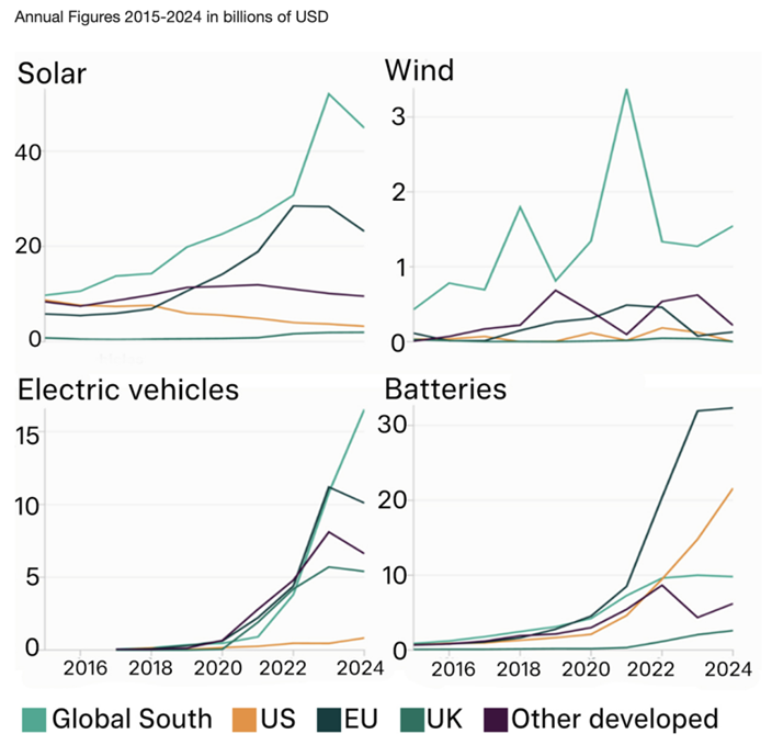 重要的是,中国还在其他绿色技术领域进行投资,推动全球竞争,并提供经济与绿色转型的机会,特别是在绿色氢能、绿色钢铁和转型矿产方面。