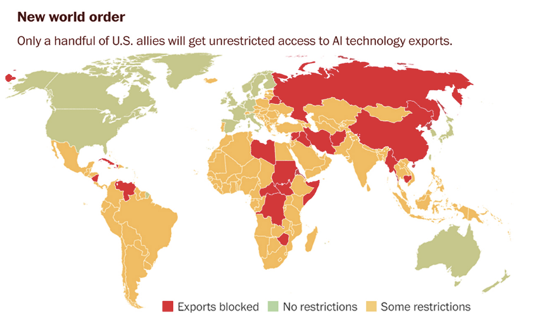 图3:受美国人工智能技术准入限制影响的国家分布图