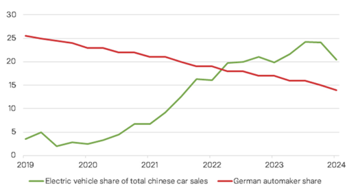 图1:德国汽车制造商在中国电动汽车转型中失利